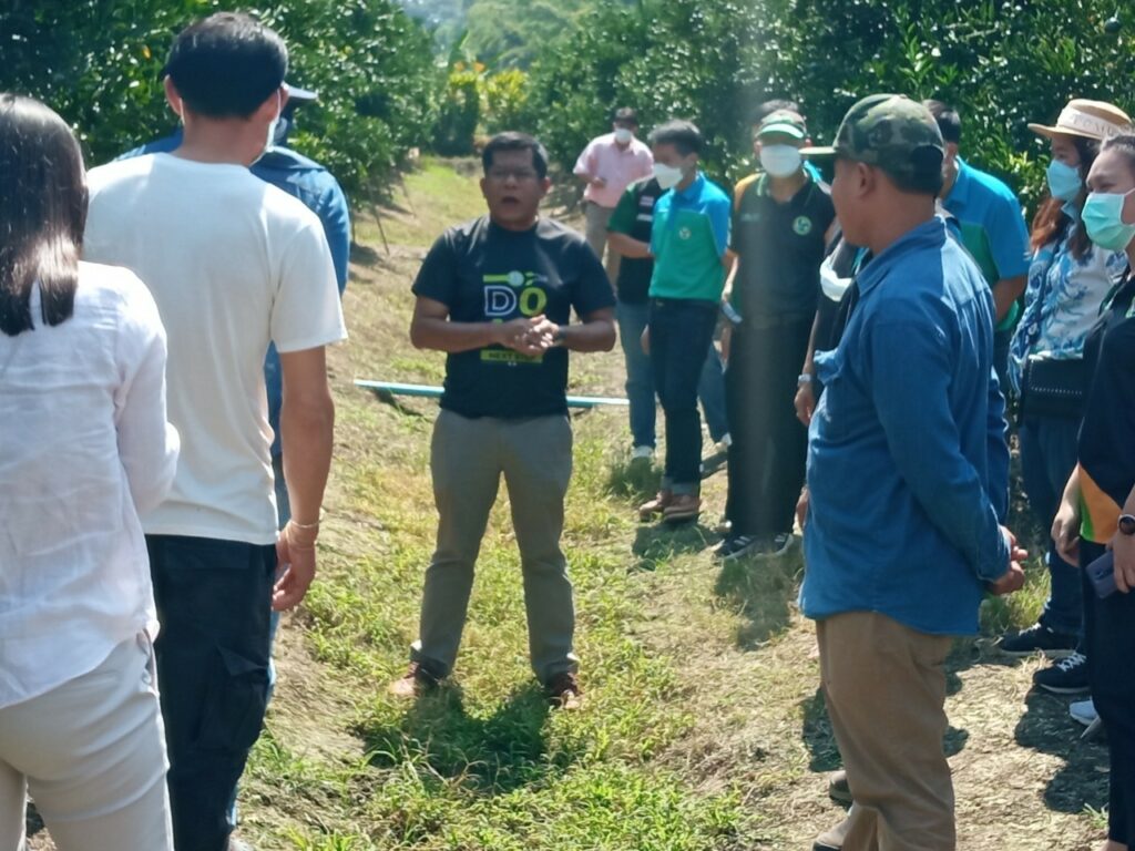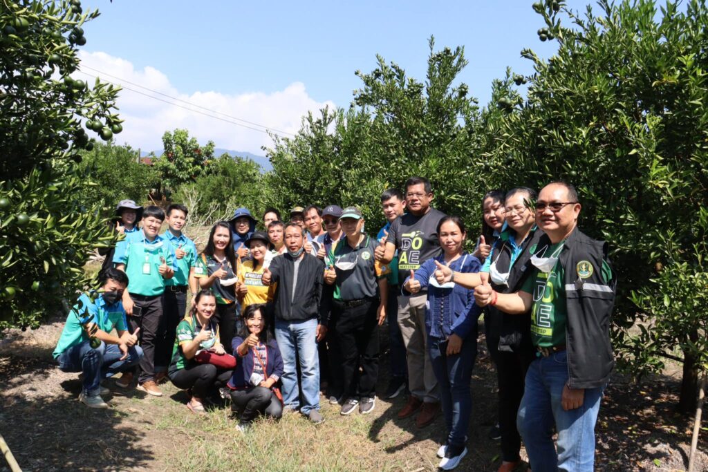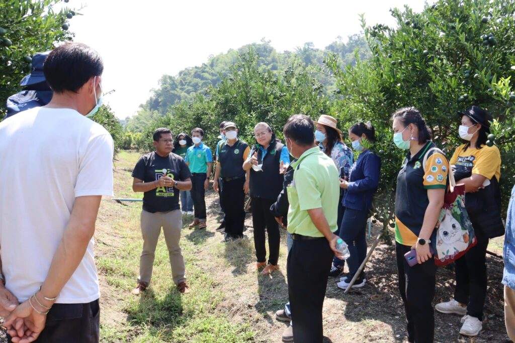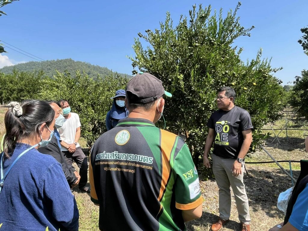 วันที่ 30 ตุลาคม 2565 เวลา 9.00 น. นายประเสริฐ พรหมวรรณ เกษตรอำเภอฝาง พร้อมด้วยเจ้าหน้าที่สำนักงานเกษตรอำเภอฝาง และเจ้าหน้าที่จากสำนักงานเกษตรจังหวัดเชียงใหม่ให้การต้อนรับ นายรพีทัศน์ อุ่นจิตตพันธ์ รองอธิบดีกรมส่งเสริมการเกษตร ในการลงพื้นที่ติดตามการดำเนินงานของกลุ่มเกษตรแปลงใหญ่ส้มสายน้ำผึ้งอำเภอฝาง เพื่อส่งเสริมเรื่องการผลิตส้มปลอดภัย ลดการใช้สารเคมี และการทำสื่อประชาสัมพันธ์การผลิตส้มสายน้ำผึ้งอำเภอฝาง เพื่อให้เป็นที่รู้จักอย่างแพร่หลาย ณ ศูนย์เรียนรู้การเพิ่มประสิทธิภาพการผลิตสินค้าเกษตรแหล่งท่องเที่ยวเชิงเกษตร และแปลงเรียนรู้การผลิตส้มคุณภาพของกลุ่มใหญ่ส้มสายน้ำผึ้ง หมู่ที่ 7 ตำบลโป่งน้ำร้อน อำเภอฝาง จังหวัดเชียงใหม่