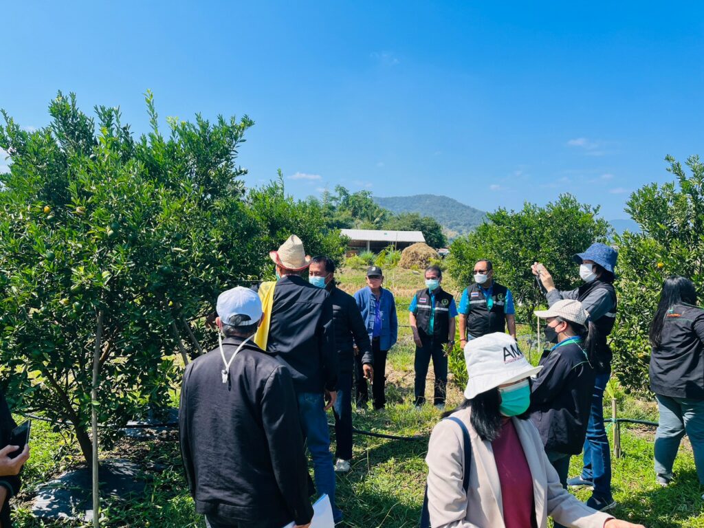 วันที่ 10 พฤศจิกายน 2565 เวลา 09.00 น. สำนักงานเกษตรอำเภอฝาง ร่วมกับ กลุ่มส่งเสริมการจัดการสารเคมีป้องกันกำจัดศัตรูพืช กองส่งเสริมอารักขาพืชและจัดการดินปุ๋ย สำนักงานส่งเสริมและพัฒนาการเกษตรที่ 6 จังหวัดเชียงใหม่ ศูนย์ถ่ายทอดเทคโนโลยีการเกษตรด้านอารักขาพืช จังหวัดเชียงใหม่ สำนักงานเกษตรจังหวัดเชียงใหม่ ร่วมติดตามการใช้สารเคมีป้องกันกำจัดศัตรูพืชในส้มเขียวหวาน ตลอดจนสร้างการรับรู้ความเข้าใจในการใช้สารเคมีที่ถูกต้องและถูกวิธี ณ ศูนย์เรียนรู้การเพิ่มประสิทธิภาพการผลิตสินค้าการเกษตร (ศพก.เครือข่าย) ตำบลโป่งน้ำร้อน อำเภอฝาง จังหวัดเชียงใหม่