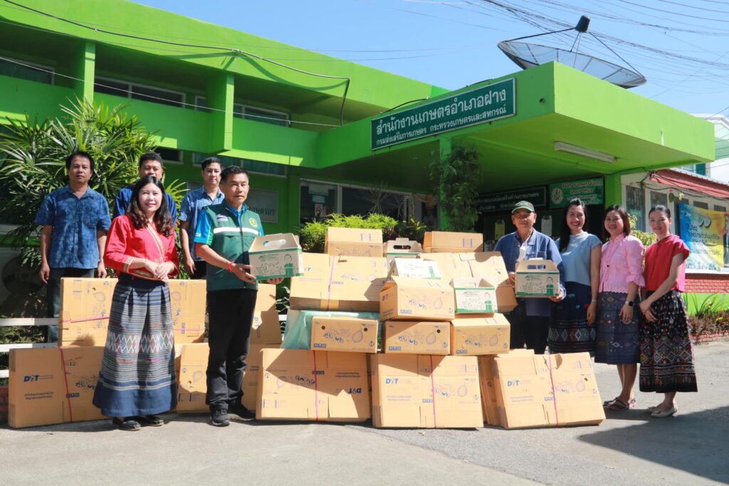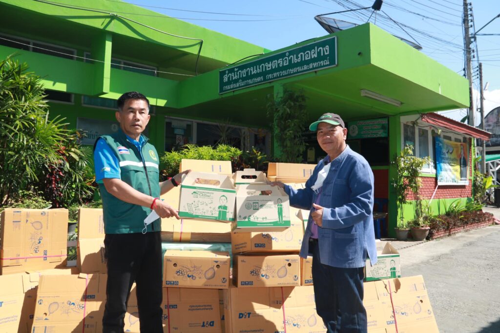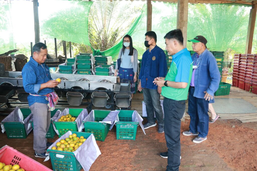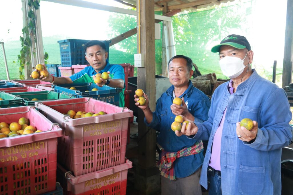 วันที่ 17 พฤศจิกายน 2565 เวลา 10.00 น. นายประเสริฐ พรหมวรรณ เกษตรอำเภอฝาง พร้อมเจ้าหน้าที่สำนักงานเกษตรอำเภอฝาง ให้การต้อนรับ นายเจริญ พิมพ์ขาล เกษตรจังหวัดเชียงใหม่ ในโอกาสเดินทางมาติดตามสถานการณ์ผลผลิตส้มอำเภอฝางจังหวัดเชียงใหม่ เพื่อเตรียมจัดงานประชาสัมพันธ์ส่งเสริมช่องทางกระจายผลผลิต และการบริโภคช่วยกระจายผลิต สร้างรายได้แก่เกษตรกร พร้อมมอบบรรจุภัณฑ์ที่ใช้บรรจุผลผลิตส้มแก่เกษตรกร และเดินทางไปเยี่ยมเยียนกลุ่มวิสาหกิจชุมชน บ้านต้นผึ้งใต้ หมู่ 7 ศูนย์เรียนรู้การเพิ่มประสทธิภาพการผลิตสินค้าเกษตร โดยมี นายภาคิณ พันธุพิน เกษตรกรต้นแบบ ร่วมให้ข้อมูล ตำบลโป่งน้ำร้อน อำเภอฝาง จังหวัดเชียงใหม่