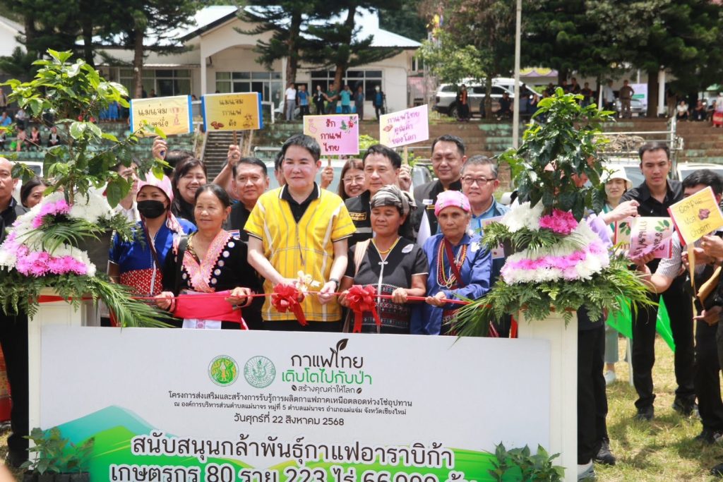 วันที่ 22 สิงหาคม 2568 นายประเสริฐ พรหมวรรณ เกษตรอำเภอฝาง มอบหมายให้ เจ้าหน้าที่สำนักงานเกษตรอำเภอฝาง เข้าร่วมงานโครงการส่งเสริมและสร้างการรับรู้การผลิตกาแฟภาคเหนือตลอดห่วงโซ่อุปทาน เพื่อเป็นการส่งเสริมการผลิตกาแฟในพื้นที่จังหวัดเชียงใหม่ เกิดการพัฒนาต่อยอด ขยายพื้นที่ผลิตกาแฟคุณภาพและสร้างความยังยื่นในชุมชน ณ องค์การบริหารส่วนตำบลแม่นาจร อำเภอแม่แจ่ม จังหวัดเชียงใหม่
