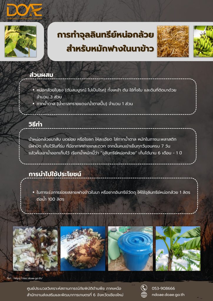 ศปภ. ภาคเหนือ แนะนำ “การทำจุลลินทรีย์หน่อกล้วย สำหรับหมักฟางในนาข้าว”