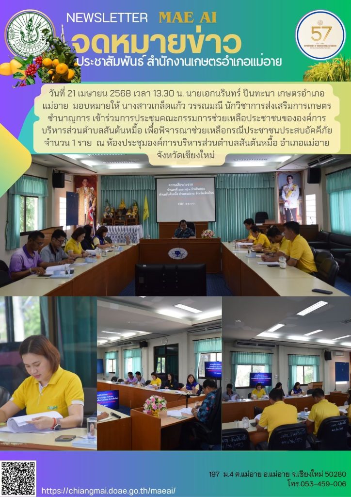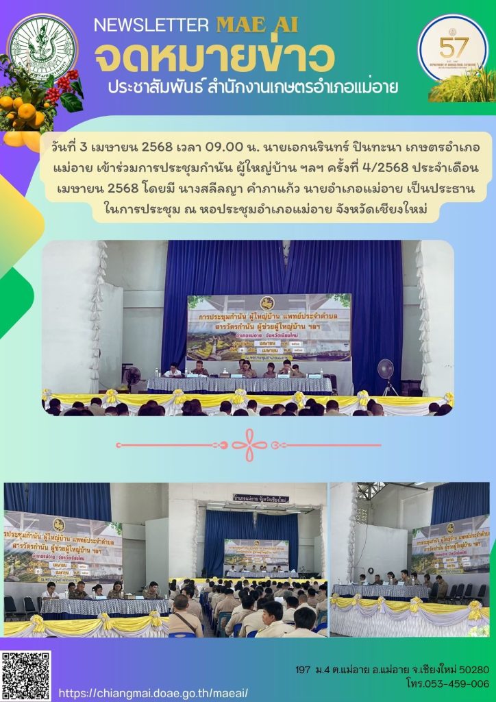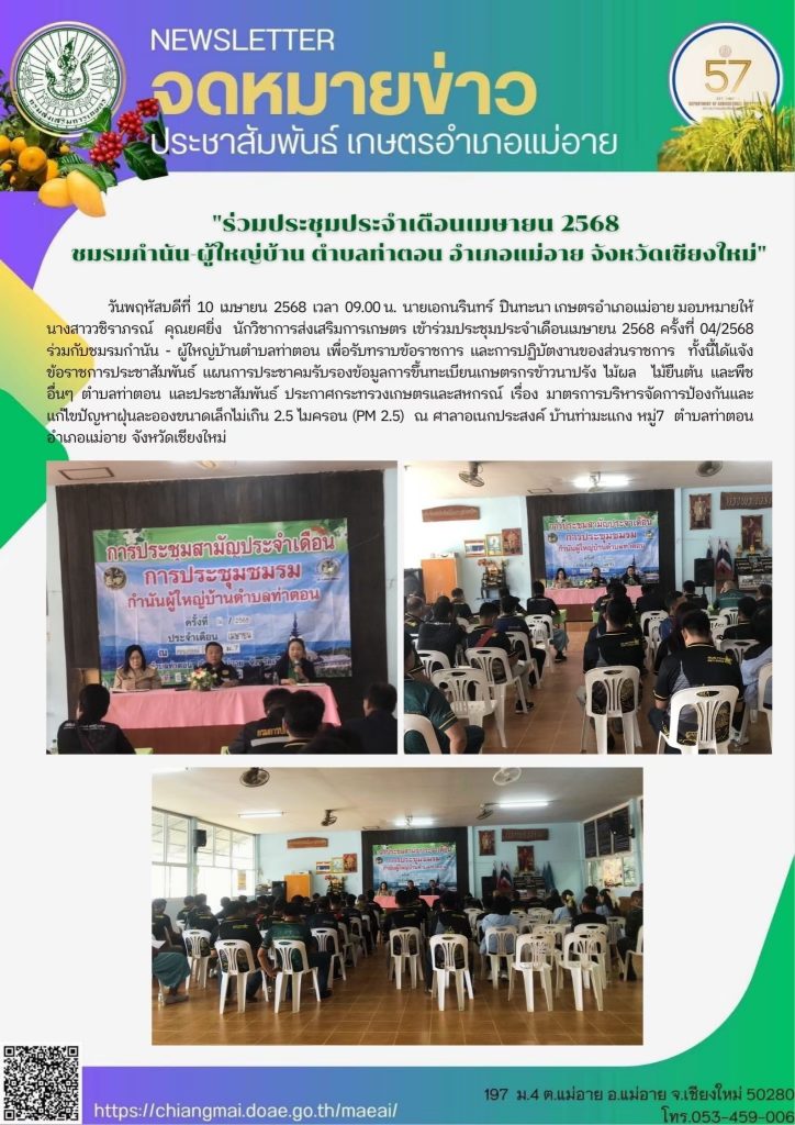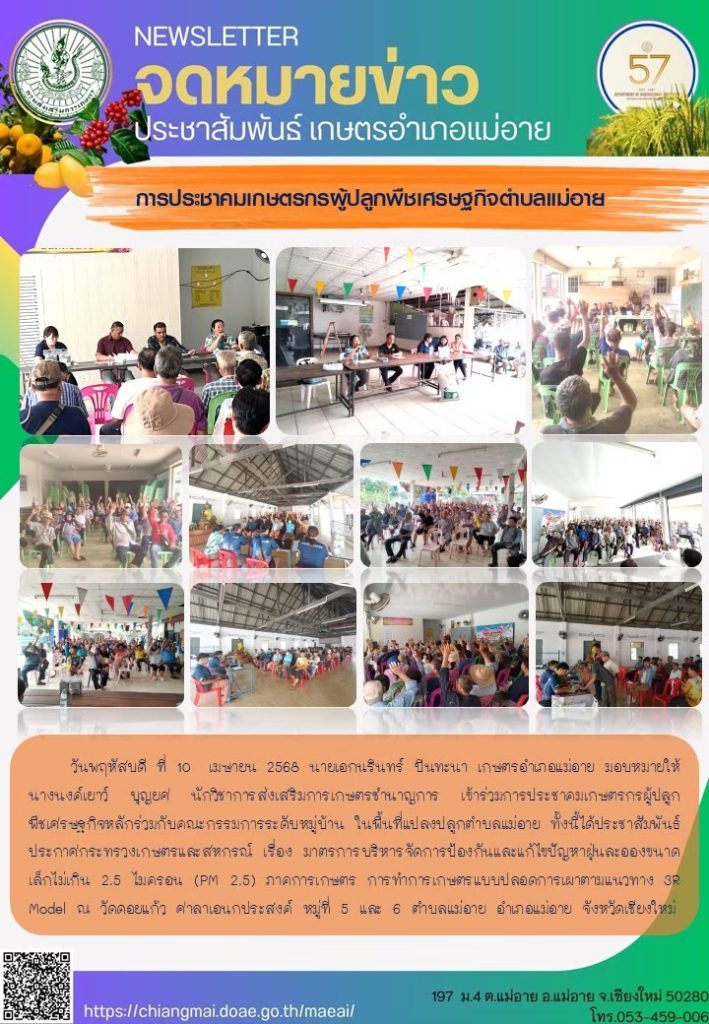 ข่าวประชาสัมพันธ์ สรุปข่าวประจำเดือนเมษายน 2568 Doae maeai 20 สิงหาคม 2025 สำนักงานเกษตรอำเภอแม่อาย สรุปข่าวประชาสัมพันธ์ ประจำเดือนเมษายน 2568 Continue Reading Previous Previous post: สรุปข่าวประชาสัมพันธ์เดือน มีนาคม 2568Next Next post: สรุปข่าวประชาสัมพันธ์ ประจำเดือนพฤษภาคม 2568 ใส่ความเห็น ยกเลิกการตอบอีเมลของคุณจะไม่แสดงให้คนอื่นเห็น ช่องข้อมูลจำเป็นถูกทำเครื่องหมาย *ความเห็น * ชื่อ * อีเมล * เว็บไซต์ บันทึกชื่อ, อีเมล และชื่อเว็บไซต์ของฉันบนเบราว์เซอร์นี้ สำหรับการแสดงความเห็นครั้งถัดไป Δ Related News สรุปข่าวประชาสัมพันธ์ ประจำเดือนกรกฎาคม 2568 สรุปข่าวประชาสัมพันธ์ ประจำเดือนกรกฎาคม 2568 20 สิงหาคม 2025 สรุปข่าวประชาสัมพันธ์ ประจำเดือนมิถุนายน 2568 สรุปข่าวประชาสัมพันธ์ ประจำเดือนมิถุนายน 2568 20 สิงหาคม 2025