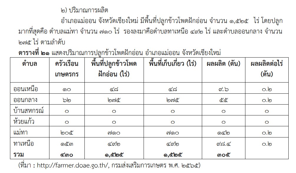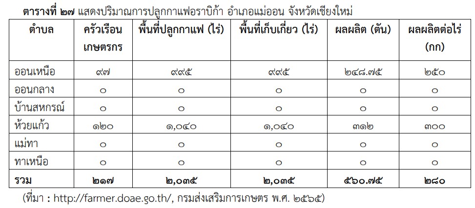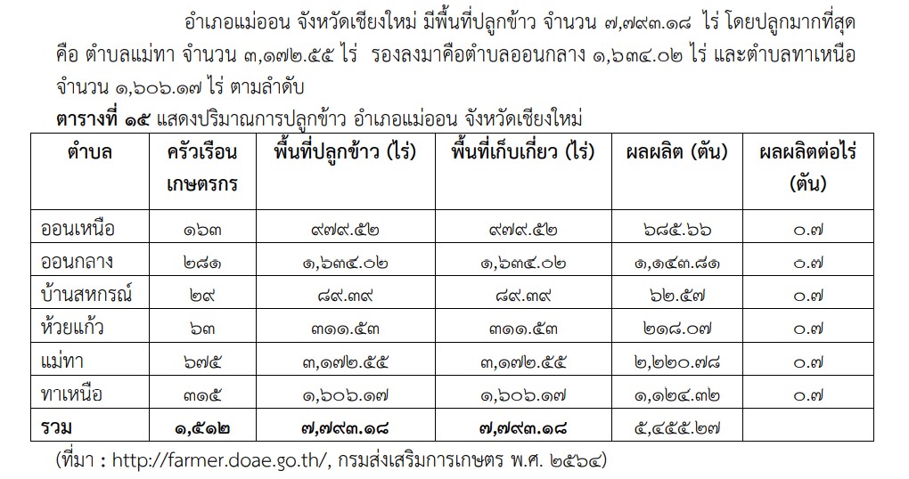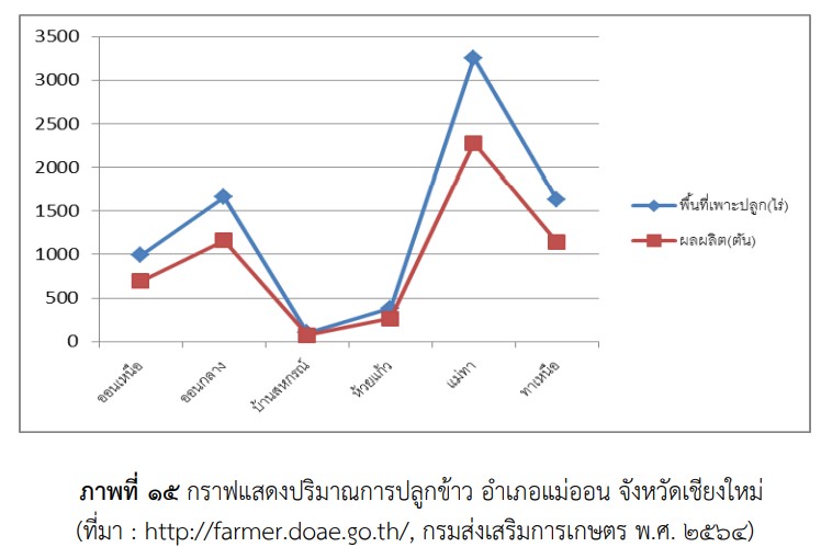 สถิติการปลูกพืช สถิติการปลูกข้าวของอำเภอแม่ออน สถิติการปลูกข้าวโพดฝักอ่อนอำเภอแม่ออน สถิติการปลูกกาแฟ อำเภอแม่ออน