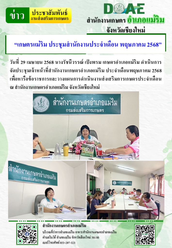 “เกษตรแม่ริม เยี่ยมเยียนและติดตามสถานการณ์การรับซื้อข้าวนาปี ปีการผลิต 2568/69”