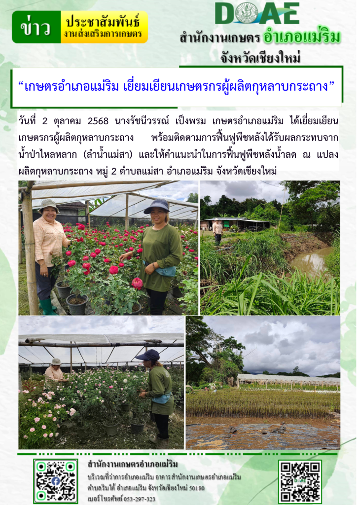 Continue Reading Previous “เกษตรอำเภอแม่ริม เยี่ยมเยียนเกษตรกรทำนา” Related Posts “เกษตรอำเภอแม่ริม เยี่ยมเยียนเกษตรกรทำนา” 2 ตุลาคม 2025 maerim65 “เกษตรอำเภอแม่ริม เยี่ยมเยียน The First miracle flower castle mon jam ปราสาทดอกไม้ และ ฟาร์มแกะอัลปาก้าม่อนแจ่ม” 30 กันยายน 2025 maerim65 “เกษตรอำเภอแม่ริม เข้าร่วมการประชุมเกษตรอำเภอ ประจำเดือน ตุลาคม 2568” 29 กันยายน 2025 maerim65