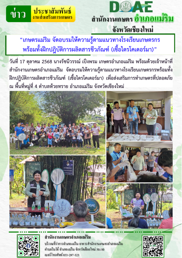 Continue Reading Previous “เกษตรแม่ริม ร่วมหลักสูตรการพัฒนาวิทยากรผู้ถ่ายทอดความรู้การปลูกข้าวด้วยเทคโนโลยีที่เท่ากันต่อภูมิอากาศ (Train the Trainer)” Related Posts “เกษตรแม่ริม ร่วมหลักสูตรการพัฒนาวิทยากรผู้ถ่ายทอดความรู้การปลูกข้าวด้วยเทคโนโลยีที่เท่ากันต่อภูมิอากาศ (Train the Trainer)” 17 ตุลาคม 2025 maerim65 “เกษตรแม่ริม ร่วมประชุมกลุ่มแปลงใหญ่ข้าว ตำบลห้วยทราย” 14 ตุลาคม 2025 maerim65 “เกษตรแม่ริม ทำกิจกรรมผสมปุ๋ยใช้เอง ตามโครงการของกลุ่มจังหวัด ภาคเหนือตอนบน 1 ปีงบประมาณ พ.ศ.2568” 9 ตุลาคม 2025 maerim65