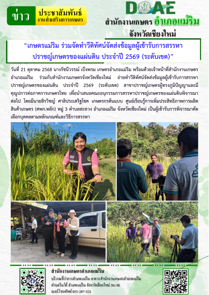 เชิญเกษตรกรร่วมประกวดผลผลิตทางการเกษตร “งานครบรอบ 111 ปี และของดีอำเภอแม่ริม”