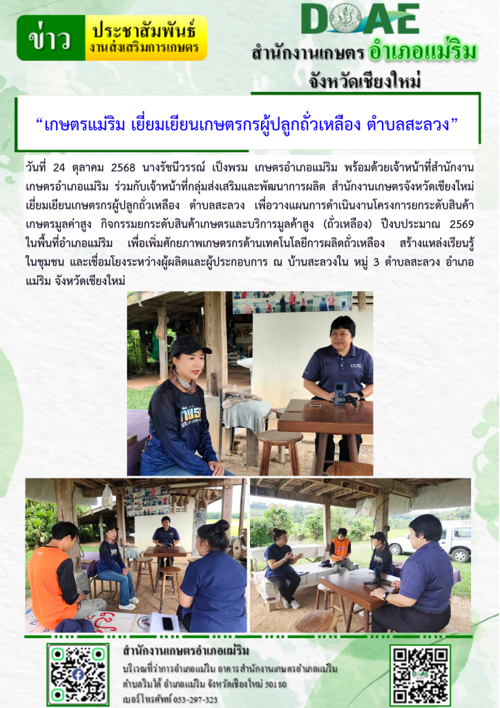 “เกษตรแม่ริม เยี่ยมเยียนและติดตามสถานการณ์การรับซื้อข้าวนาปี ปีการผลิต 2568/69”