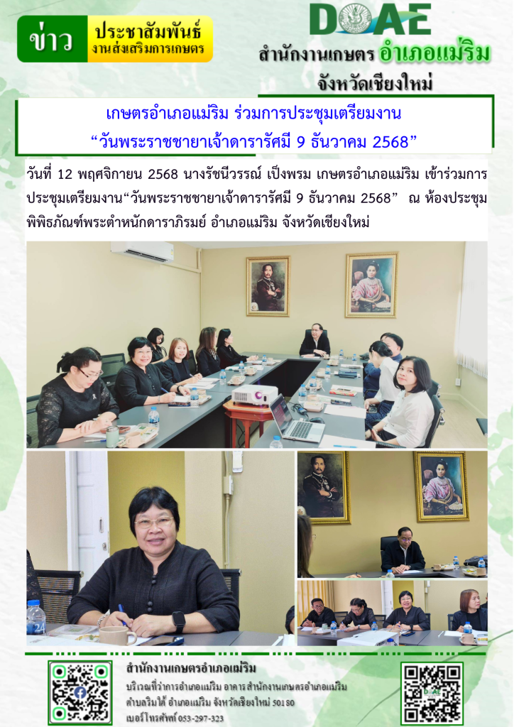 Continue Reading Previous “เกษตรแม่ริม เยี่ยมเยียนและติดตามสถานการณ์การผลิตและการจำหน่ายส้มเขียวหวาน พันธุ์สายน้ำผึ้ง”Next “เกษตรแม่ริม ติดตามผลการดำเนินงานของวิสาหกิจชุมชนหญ้งแพงโกล่าและข้าวคุณภาพ แม่ริม” Related Posts “เกษตรอำเภอแม่ริม ติดตามสถานการณ์การผลิตข้าวโพดหวาน” 13 พฤศจิกายน 2025 maerim65 “เกษตรแม่ริม ติดตามผลการดำเนินงานของวิสาหกิจชุมชนหญ้งแพงโกล่าและข้าวคุณภาพ แม่ริม” 13 พฤศจิกายน 2025 maerim65 “เกษตรแม่ริม เยี่ยมเยียนและติดตามสถานการณ์การผลิตและการจำหน่ายส้มเขียวหวาน พันธุ์สายน้ำผึ้ง” 5 พฤศจิกายน 2025 maerim65