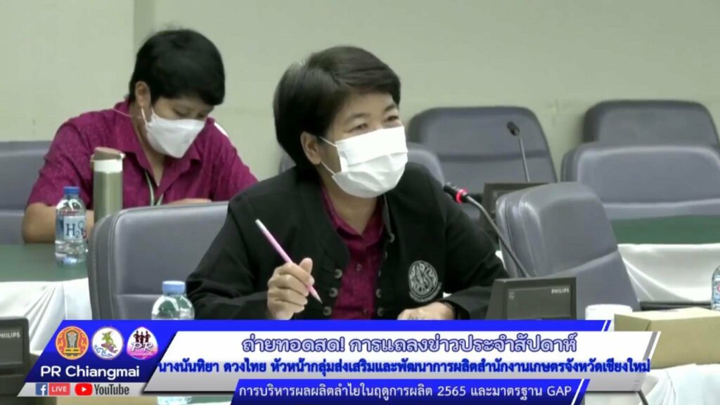 เกษตรเชียงใหม่ร่วมแถลงข่าวสื่อมวลชนประจำสัปดาห์ : สถานการณ์ผลผลิตลำไยในฤดูปีการผลิต 2565 และการส่งเสริมการผลิตลำไยตามมาตรฐาน GAP