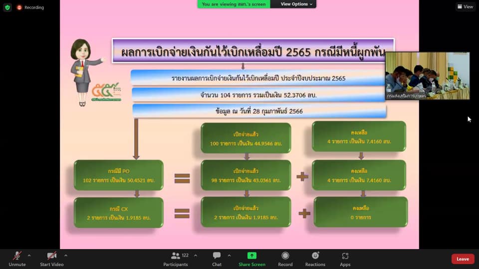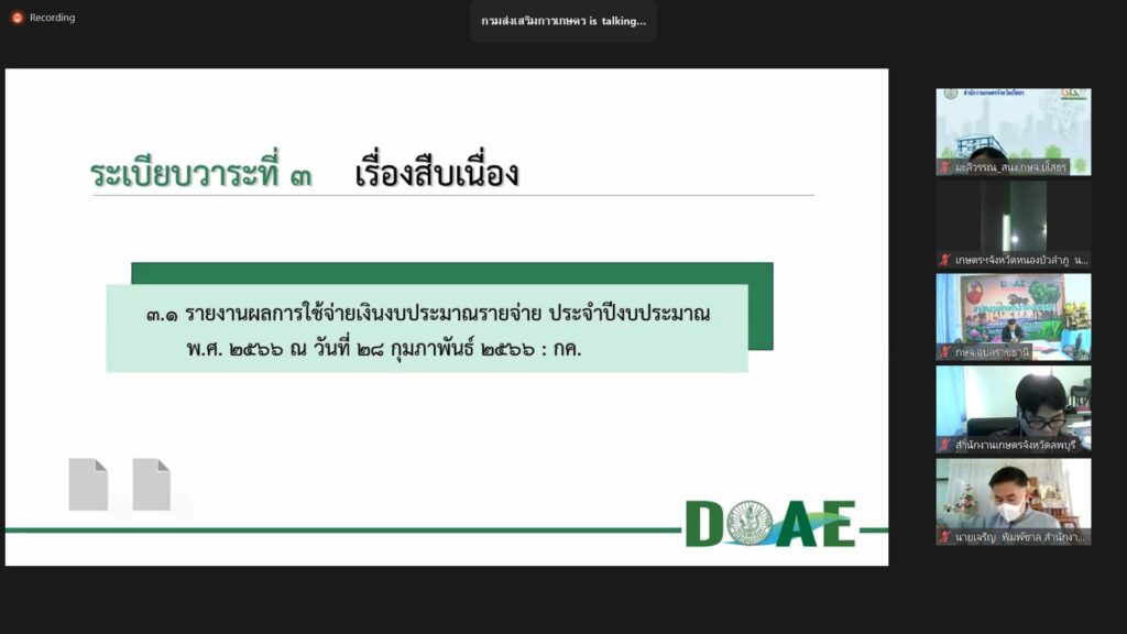 วันที่ 7 มีนาคม 2566 นายเจริญ พิมพ์ขาล เกษตรจังหวัดเชียงใหม่ ร่วมประชุมผู้บริหารกรมส่งเสริมการเกษตรครั้งที่ 2/2566 โดยมีนายเข้มแข็ง ยุติธรรมดำรง อธิบดีกรมส่งเสริมการเกษตร เป็นประธานการประชุม ณ ห้องประชุม 7 ชั้น 5 กรมส่งเสริมการเกษตร เพื่อติดตามผลการดำเนินงาน และเร่งรัดการดำเนินงานโครงการที่สำคัญ โดยมีผู้บริหารกรมส่งเสริมการเกษตร ในส่วนกลาง และหน่วยงานส่วนภูมิภาค ได้แก่ สำนักงานส่งเสริมและพัฒนาการเกษตร ที่ 1-6 และ สำนักงานเกษตรจังหวัดทั่วประเทศ เข้าร่วมประชุมผ่านระบบทางไกล (Application Zoom)