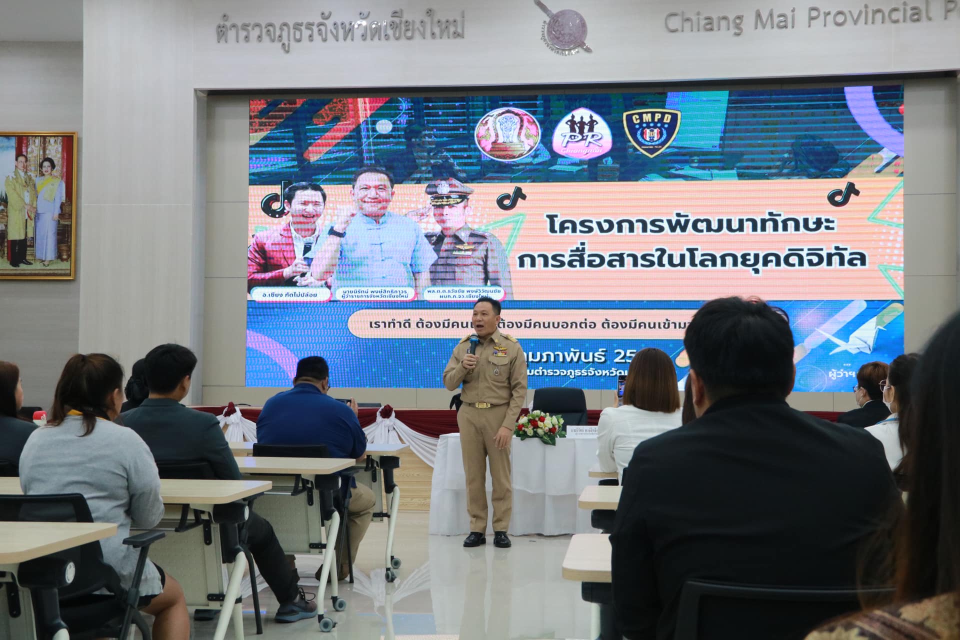 ระหว่างวันที่ 6-7 กุมภาพันธ์ 2567 ณ ห้องประชุมตำรวจภูธรจังหวัดเชียงใหม่ อำเภอเมืองเชียงใหม่ จังหวัดเชียงใหม่ นายเจริญ พิมพ์ขาล เกษตรจังหวัดเชียงใหม่มอบหมายให้ นายธนเดช วงค์เขียว นักวิชาการส่งเสริมการเกษตรชำนาญการ ร่วมอบรมโครงการพัฒนาทักษะการสื่อสารในโลกยุคดิจิทัล พัฒนาทักษะด้านสื่อดิจิทัลและการผลิต Content เพื่อการประชาสัมพันธ์จังหวัด ผ่านแอปพลิเคชั่น TikTok โดยมีนายนิรัตน์ พงษ์สิทธิถาวร ผู้ว่าราชการจังหวัดเชียงใหม่ เป็นประธานเปิดโครงการฯ ซึ่งมีเป้าหมายประกอบด้วย เจ้าหน้าที่ตำรวจจากสถานีตำรวจสังกัดตำรวจภูธรจังหวัดเชียงใหม่ บุคลากรจากหน่วยงานราชการและส่วนท้องถิ่นในจังหวัดรวมกว่า 68 หน่วยงาน เข้าร่วม สำหรับการฝึกอบรมดังกล่าวมีวัตถุประสงค์หลักคือการพัฒนาทักษะด้านด้านสื่อดิจิทัล ของบุคลากรของจังหวัดเชียงใหม่ เพื่อยกระดับศักยภาพให้สูงขึ้น สามารถผลิตสื่อประชาสัมพันธ์เพื่อสื่อสารองค์กร และร่วมประชาสัมพันธ์กิจกรรมต่าง ๆ ในจังหวัดเชียงใหม่ ภายในการอบรมมีการบรรยายในหัวข้อ ทักษะการสื่อสารในยุคดิจิทัล แนวทางการผลิตสื่อที่ดี ทันสมัย เหมาะสมกับสถานการณ์ปัจจุบัน ด้านกิจกรรมกลุ่ม โดยนายวศิน พรวิจิตรจินดา หรือ อาจารย์เชียง กัดไม่ปล่อย ผู้เชี่ยวชาญด้านการทำ TikTok ซึ่งจะให้ความรู้ด้านต่าง ๆ ของการใช้ TikTok และมีการลงพื้นที่ บ้านป่าตาล อำเภอสันกำแพง และ วัดศรีนวรัฐ อำเภอสันป่าตอง จ.เชียงใหม่ เพื่อทำ Content ส่งเสริมการท่องเที่ยววิถีชุมชน และการไถกลบวัสดุทางการเกษตรหลังฤดูกาลเก็บเกี่ยว เพื่อลดพื้นที่การเผาของแต่ละอำเภอ ซึ่งถือว่าเป็นนโยบายหลักของจังหวัดในการแก้ไขปัญหาหมอกควันไฟป่า และเพื่อพัฒนาทักษะการทำ Content ในการปฏิบัติจริง https://vt.tiktok.com/ZSFN6a4vw/+7