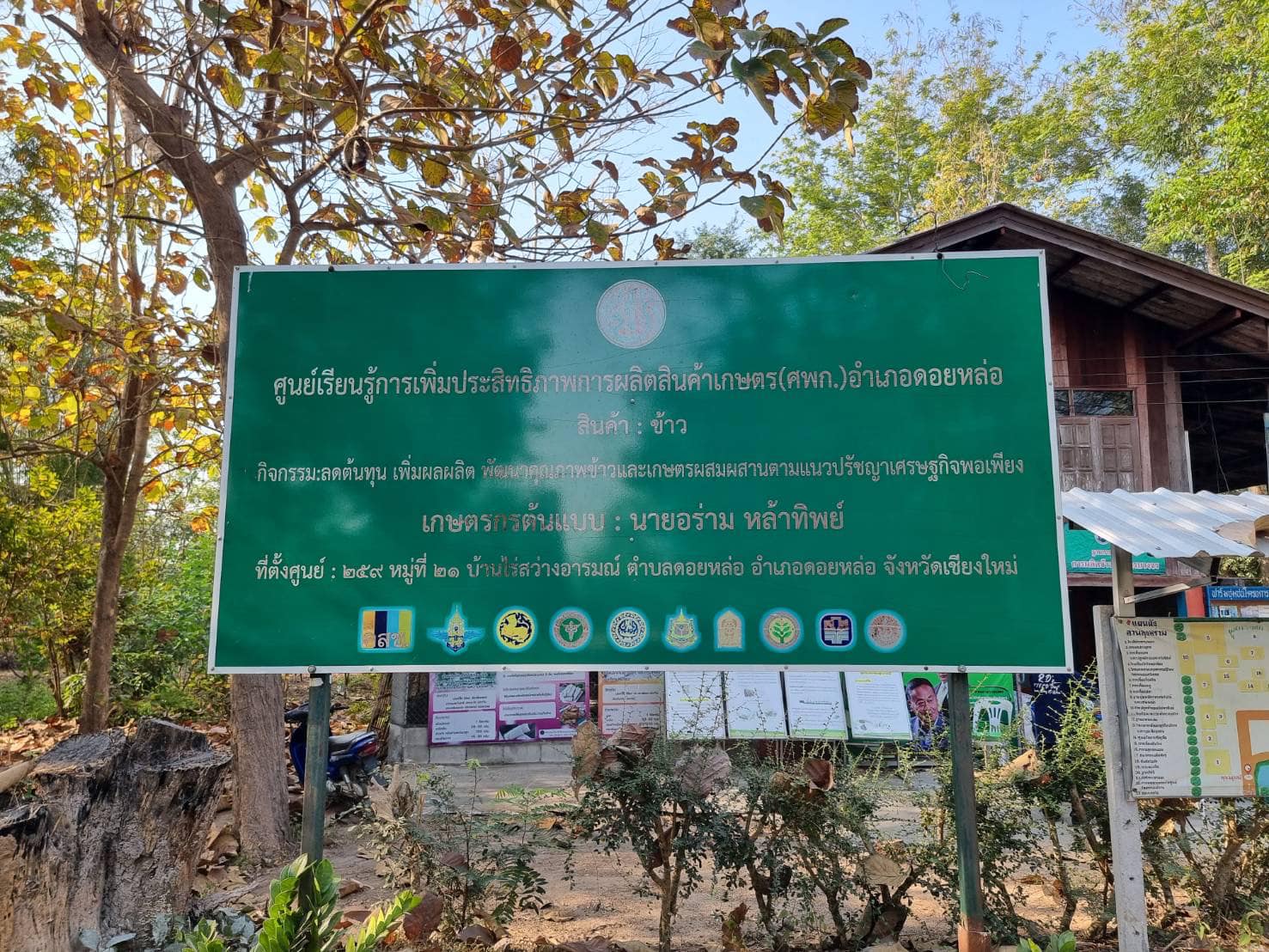 วันที่ 5 มีนาคม 2567 สำนักงานเกษตรจังหวัดเชียงใหม่ ส่งศูนย์เรียนรู้การเพิ่มประสิทธิภาพการผลิตสินค้าเกษตรอำเภอดอยหล่อ ชิงดีเด่นระดับเขต โดยมีนายเจริญ พิมพ์ขาล เกษตรจังหวัดเชียงใหม่ กล่าวต้อนรับคณะกรรมการ การประกาดศูนย์เรียนรู้ฯ จากกระทรวงเกษตรและสหกรณ์มีนายอร่าม หล้าทิพย์ เกษตรกรต้นแบบการเรียนรู้ ที่น้อมนำศาสตร์พระราชา มาปรับใช้ในการทำการเกษตรในพื้นที่ อำเภอดอยหล่อซึ่งเป็นดินแดนเขตเงาฝน เกษตรกรส่วนใหญ่ปลูกพืชเชิงเดี่ยวทำให้มีความเสี่ยง ด้านราคา ประกอบด้วยฐานการเรียนรู้ดังนี้ ฐานเการรียนรู้ที่ 1 การผลิตข้าวครบวงจร ฐานการเรียนรู้ที่ 2 เลี้ยงแหนแดง ฐานเรียนการรู้ที่ 3 การเลี้ยงปศุสัตว์ ประมง ฐานเรียนรู้ที่ 4 การทำปุ๋ยหมัก น้ำหมักชีวภาพ ฐานการเรียนรู้ที่ 5 การทำบัญชีครัวเรือน ฐานการเรียนรู้ที่ 6 การทำไร่นาสวนผสม ฐานการเรียนรู้ที่ 7 การปลูกสมุนไพร นางธัญญรัตน์ ปาระมี เกษตรอำเภอดอยหล่อ กล่าวว่า ศูนย์ศพก. ดอยหล่อแห่งนี้เป็นแหล่งเรียนรู้การขับเคลื่อนเกษตรอินทรีย์ด้วย BCG Economy Model บนพื้นที่ 9ไร่ ปลูกพืชเลี้ยงสัตว์ภายใต้ระบบอินทรีย์ กิจกรรมทุกอย่างเป็นไปอย่างเกื้อกูล เช่นการใช้วัสดุเหลือใช้จากการผลิต เป็นปุ๋ยลดต้นทุน ใช้แหนแดง ทดแทนปุ๋ยยูเรีย เป็นต้นโดยมีพันธุ์ข้าวที่สำคัญข้าวไรซ์เบอรี่เพื่อสุขภาพ และข้าวก่ำหอมแม่โจ้1แปรรูปเพิ่มมูลค่า เป็นผลิตภัณฑ์จากข้าว เป็นสบู่ โลขั่น ลิปมัน ฯ จำหน่ายภายใต้ชื่อการค้า “ผาช่อ” ขยายผลเป็นศูนย์ข้าวชุมชนตำบลผาช่อ ตลอดจนเป็นครูสอนยุวเกษตรโรงเรียนบ้านสองแคว โรงเรียนบ้านสันติสุข จนได้รับรางวัลยุวเกษตรกรระดับประเทศ มาแล้วไม่เพียงเท่านี้ยังสร้างเครือข่ายการผลิตของกลุ่มเกษตรกร ในพื้นที่ ที่สามารถสร้างรายได้และทำให้คนในชุมชนอยู่ได้อย่างยั่งยืน