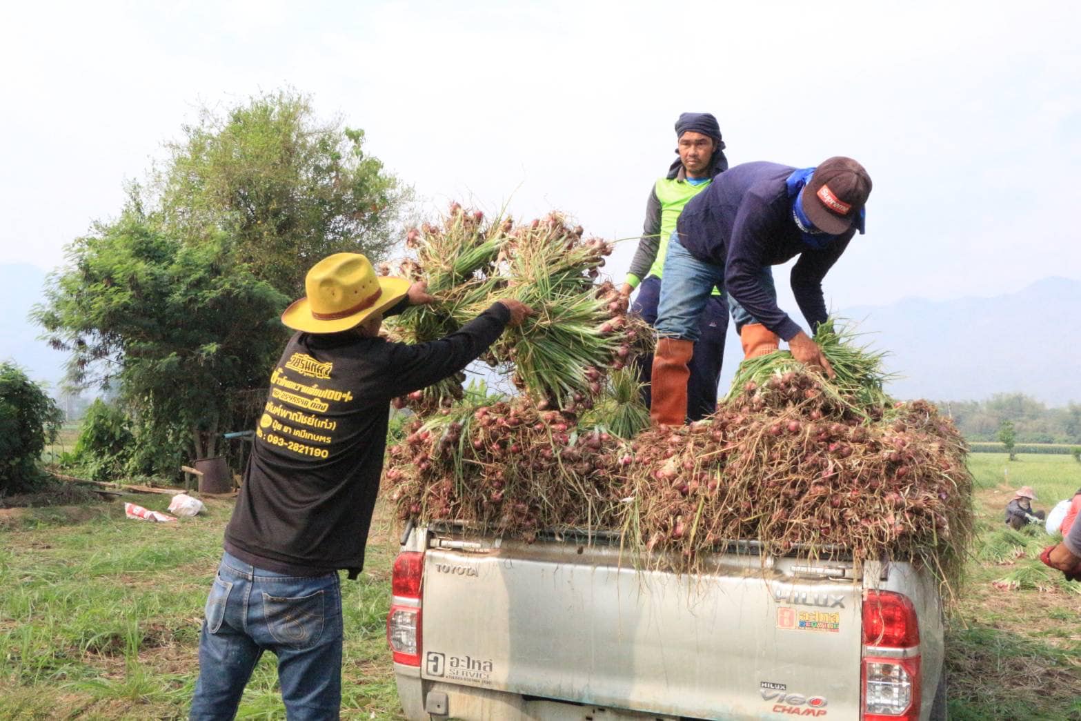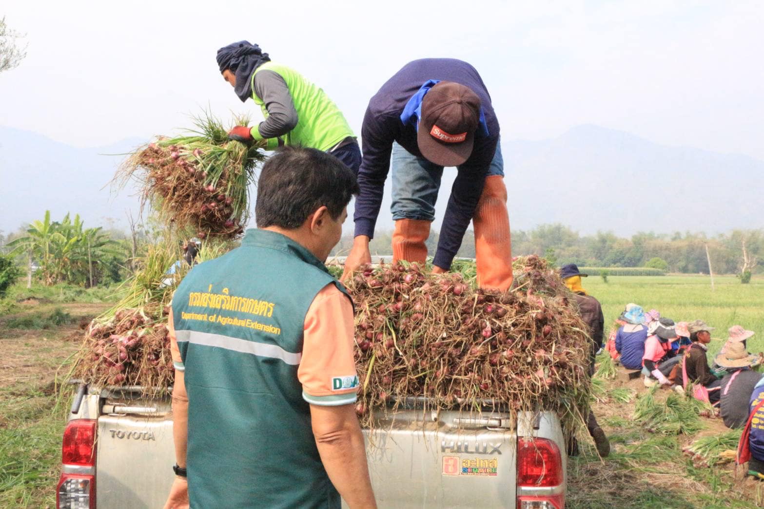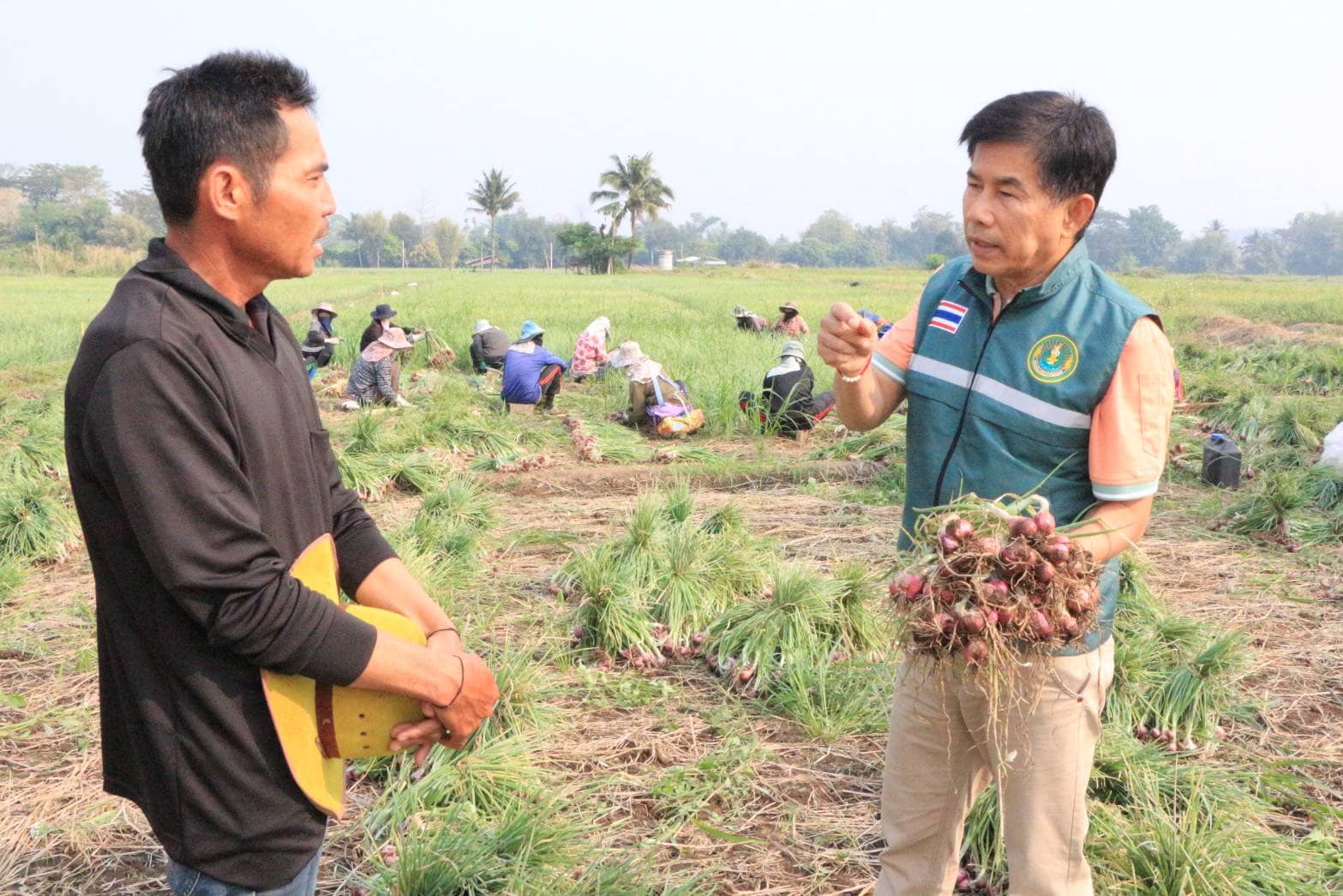 วันที่ 7 มีนาคม 2567 เวลา 09.00น. นายเจริญ พิมพ์ขาล เกษตรจังหวัดเชียงใหม่ ลงพื้นที่ติดตามสถานการณ์การเก็บเกี่ยวหอมแดง โดยนางสาวพีรดี เหมวิรัช เกษตรอำเภอแม่ออน รักษาราชการแทนเกษตรอำเภอดอยเต่า นายกฤษดา แก้วดอกเกษตรกรผู้นำเจ้าของแปลงร่วมให้ข้อมูลการผลิต จังหวัดเชียงใหม่ มีพื้นที่ปลูกหอมแดงจำนวน 8,827 ไร่ ผลผลิตประมาณ 32,028 ตัน ปลูกมากที่อำเภอแม่แจ่ม จอมทอง ฮอด ดอยเต่า เกษตรกรช่วงปลูกถึงเก็บเกี่ยวตั้งแต่เดือนพฤศจิกายน ถึงเมษายน ใช้เวลาประมาณ 2 เดือนครึ่ง ราคาอยู่ในช่วง 13.7 บาทต่อกิโลกรัม ซึ่งเกษตรกรเจ้าของแปลง กล่าวว่าตนปลูกหอมแดงบนพื้นที่ 3ไร่ 1งานแหล่งหัวพันธุ์นำมาจากจังหวัดอุตรดิตถ์ เกษตรกรจะเก็บดอกหอม จำหน่ายในช่วงพัฒนาหัวเป็นผลพลอยได้ ประมาณ 4 ครั้ง ราคาอยู่ที่กิโลกรัมละ 5-40 บาท เพราะการเด็ดดอกหอมออกนั้น จะทำให้หอมแดงที่ได้มีขนาดหัวใหญ่ น้ำหนักดี ซึ่งขณะนี้แปลง 3 ไร่ 1งาน ของตนกำลังเก็บเกี่ยวผลผลิตได้ 19,500 กิโลกรัม โดยมีพ่อค้ามารับซื้อหน้าสวนกิโลกรัมละ 13.7 บาท และราคาจะอยู่ที่ระยะเวลาที่หอมแดงให้ผลผลิต เกษตรอำเภอให้ข้อมูลเพิ่มเติมว่า อำเภอดอยเต่ามีพื้นที่ปลูกหอมแดง1,076ไร่ เป็นแหล่งผลิตหอมแดงคุณภาพแหล่งใหญ่ การเพาะปลูกของเกษตรกรดอยเต่าใช้พื้นที่ทางการเกษตรสร้างมูลค่าโดยหมุนเวียนเปลี่ยนชนิดพืชจึงไม่ทำให้เกิดการสะสมของโรคและแมลง โดยจะปลูกหอมแดง สลับข้าวโพด ถั่วแระญี่ปุ่น มันม่วง เป็นต้น หมุนเวียนกันไป และหอมแดงในพื้นที่ค่อนข้างให้ผลผลิตสูงบางที่สูงถึง 10,000 กิโลกรัมต่อไร่ และในปีการผลิตนี้เกษตรกรได้ราคาเป็นที่พอใจสร้างรายได้แก่ภาคการเกษตรในพื้นที่อำเภอดอยเต่าไม่ต่ำกว่า 72 ล้านบาท