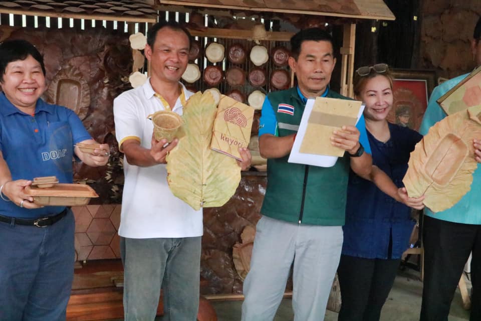 วันที่ 24 พฤษภาคม 2567 เวลา 09.30น.นายเจริญ พิมพ์ขาล เกษตรจังหวัดเชียงใหม่ ส่งเสริมวิสาหกิจชุมชนสร้างป่าสร้างรายได้เพิ่มจากใบไม้ นางรัชนีวรรณ์ เป็งพรม เกษตรอำเภอแม่ริม พร้อมนางเนตรนภา ทากาฮาชิ ประธานกลุ่มวิสาหกิจชุมชนร่วมให้ข้อมูล ณ บ้านซาง ตำบลขี้เหล็ก จังหวัดเชียงใหม่ เกษตรอำเภอกล่าวว่า จากวิกฤติหมอกควัน ไฟป่า ประกอบกับอำเภอแม่ริม มีเขตป่าชุมชน มีต้นตองตึง หรือต้นพลวง ซึ่งไม้ยืนต้นสูงประมาณ 20-30 เมตร บริเวณที่พบเป็นดินปนหิน แห้งแล้ง ที่เราเรียกว่าป่าเต็งรัง อยู่ในพื้นที่ ตำบลขี้เหล็ก ตำบลห้วยทราย ตำบลสะลวง อีกทั้งตำบลขี้เหล็กเป็นแหล่ง ปลูกข้าวโพดหวานตลอดปี หลังจากที่เก็บเกี่ยวฝักข้าวโพดแล้วทำให้มีต้นข้าวโพดเหลืออยู่เป็นจำนวนมากจึงหาวิธีเพิ่มมูลค่า จึงรับซื้อไร่ละ 800 บาท ส่วนใบตองตึงในราคา 4ใบ 1 บาท นำมาผลิตเป็นจานรักษ์โลกขนาดต่างๆ จำหน่าย ในราคาประมาณ 5-15 บาทมากที่สุดถึงชิ้นละ1,500 บาท แล้วแต่ขนาดและแบบ จำหน่ายในประเทศอเมริกา ออสเตรีย เป็นต้น โดยแต่ละวันผลิตแต่ละแบบประมาณ 2,000 ชิ้นต่อวันสร้างรายได้ปีละหลายล้านบาท กรมส่งเสริมการเกษตร โดยสำนักงานเกษตรจังหวัดเชียงใหม่ ร่วมกับจังหวัดเชียงใหม่ นายนิรัตน์ พงษ์สิทธิถาวร ผู้ว่าราชการจังหวัดอนุมัติงบประมาณ โครงการป้องกันและแก้ไขปัญหาไฟป่าหมอกควันและฝุ่นละอองขนาดเล็ก (PM 2.5)การอบรมเชิงปฏิบัติการสร้างการรับรู้การจัดการเศษวัสดุเชื้อเพลิง และเพิ่มศักยภาพการดำเนินกิจกรรมของกลุ่มวิสาหกิจชุมชนสร้างป่าสร้างรายได้ เพิ่มมูลค่าใบไม้ เพื่อสร้างเครือข่ายเกษตรกรในพื้นที่จังหวัดเชียงใหม่เพื่อเรียนรู้วิธีการเก็บใบไม้มาจำหน่ายกับทางกลุ่มตลอดจนกระทั่งการผลิตเพื่อให้เพีงพอต่อความต้องการของตลาด และเป็นการดึงเชื้อเพลิงออกจากป่าพร้อมกับสร้างมูลค่าจากเศษใบไม้ สร้างรายได้แก่เกษตรกรอีกช่องทางหนึ่งทางกลุ่มสร้างเครือข่ายในอำเภอดอยสะเก็ด และสันทรายรับซื้อใบไม้จากพื้นที่ใกล้เคียงเนื่องจากปริมาณไม่เพียงพอและร่วมกับป่าไม้ชุมชน โรงเรียนเอกชน ต่อยอดความรู้ในการผลิต และพัฒนาผลิตจานจากกาบต้นหมาก และโรงศพหมาแมวพร้อมย่อยสลาย เวลาฝังดิน ซึ่งแต่ละปีสร้างรายได้แก่กลุ่มเป็นอย่างดี โดยเป็นการสร้างมูลค่าจากใบไม้หรือเศษวัสดุเหลือใช้ทางการเกษตร เป็นการช่วยลดไฟป่าหมอกควัน สร้างรายได้อย่างยั่งยืน นี้ก็เป็นอีกตัวอย่างดีๆที่สามารถสร้างมูลค่าจากขยะทางการเกษตร หากท่านใดสนใจเรียนรู้เทคโนโลยีเพิ่มมูลค่าเศษวัสดุเหลือใข้ทางการเกษตรสามารถติดต่อสำนักนักงาน