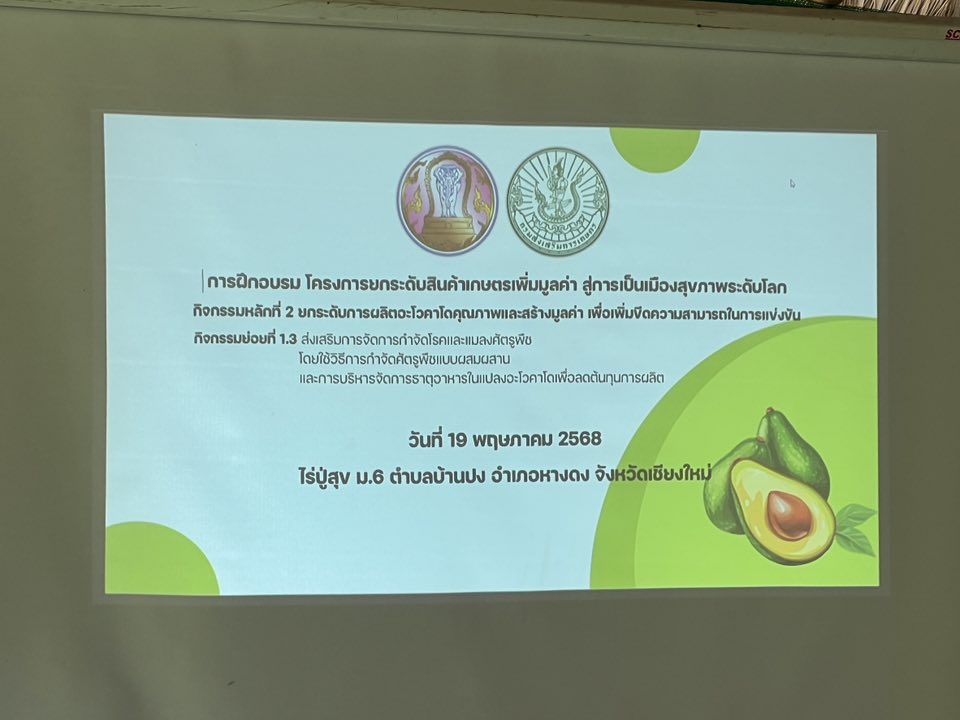 สำนักงานเกษตรจังหวัดเชียงใหม่ จัดอบรม กิจกรรมย่อยที่ 1.3 “ส่งเสริมการจัดการกำจัดโรคและแมลงศัตรูพืช โดยใช้วิธีการจัดการศัตรูพืชแบบผสมผสาน และการบริหาร จัดการธาตุอาหารในแปลงอาโวคาโดเพื่อลดต้นทุนการผลิต”