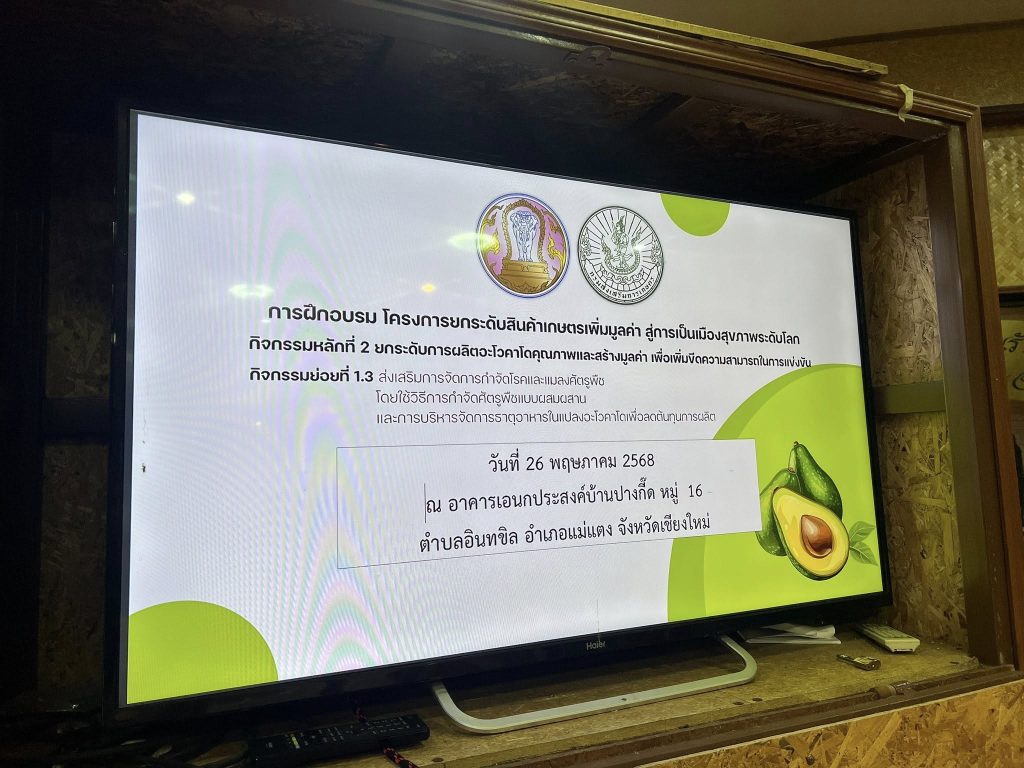 สำนักงานเกษตรจังหวัดเชียงใหม่ จัดอบรม กิจกรรมย่อยที่ 1.3 “ส่งเสริมการจัดการกำจัดโรคและแมลงศัตรูพืช โดยใช้วิธีการจัดการศัตรูพืชแบบผสมผสาน และการบริหาร จัดการธาตุอาหารในแปลงอาโวคาโดเพื่อลดต้นทุนการผลิต”