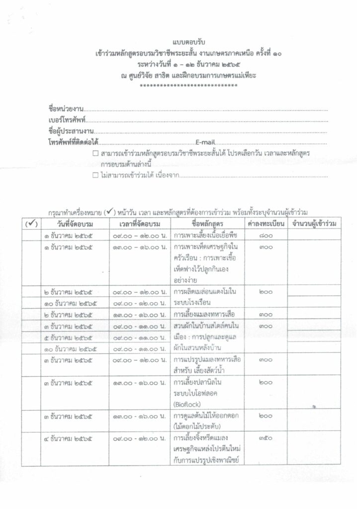 โครงการฝึกอบรมวิชาชีพระยะสั้น ในงานเกษตรภาคเหนือครั้งที่ 10 สมัครเข้าร่วมได้ที่