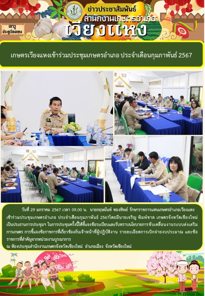 26ก.พ./24 เกษตรเวียงแหงเข้าร่วมประชุมเกษตรอำเภอ ประจำเดือนกุมภาพันธ์ 2567 26 กุมภาพันธ์ 2024ไม่มีหมวดหมู่admin