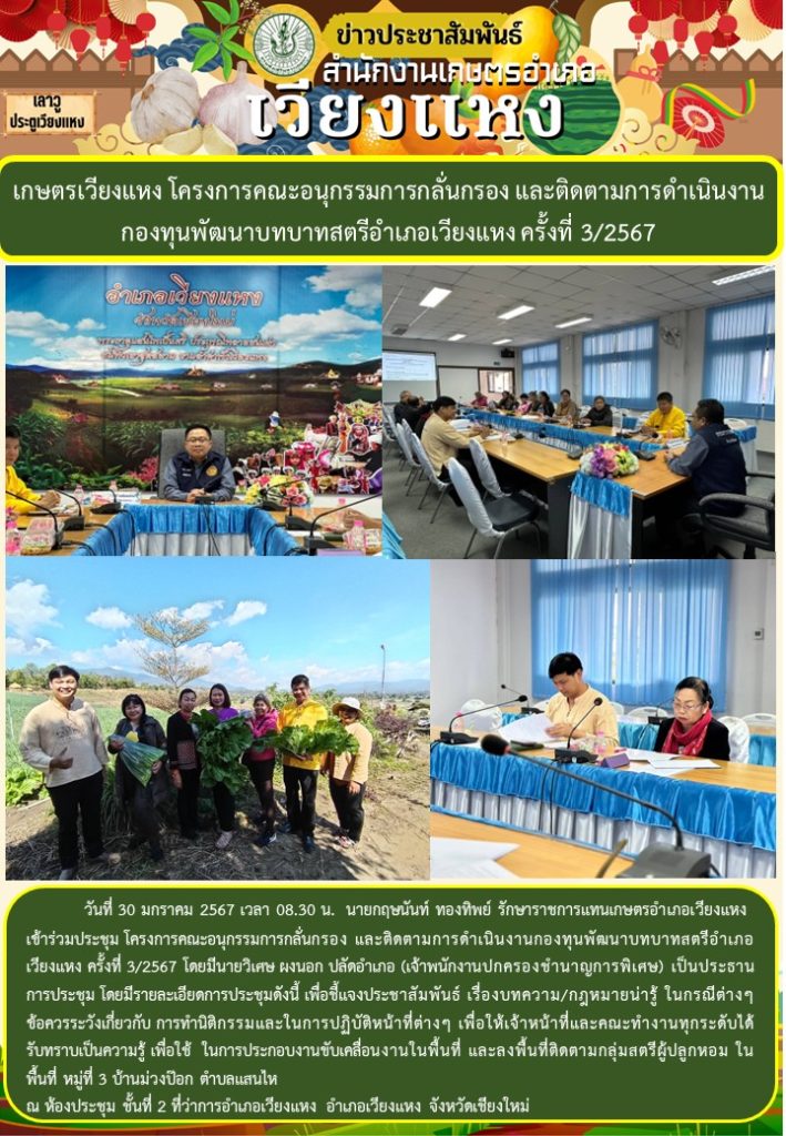26ก.พ./24 เกษตรเวียงแหง โครงการคณะอนุกรรมการกลั่นกรอง และติดตามการดำเนินงานกองทุนพัฒนาบทบาทสตรีอำเภอเวียงแหง ครั้งที่ 3/2567 26 กุมภาพันธ์ 2024ไม่มีหมวดหมู่admin