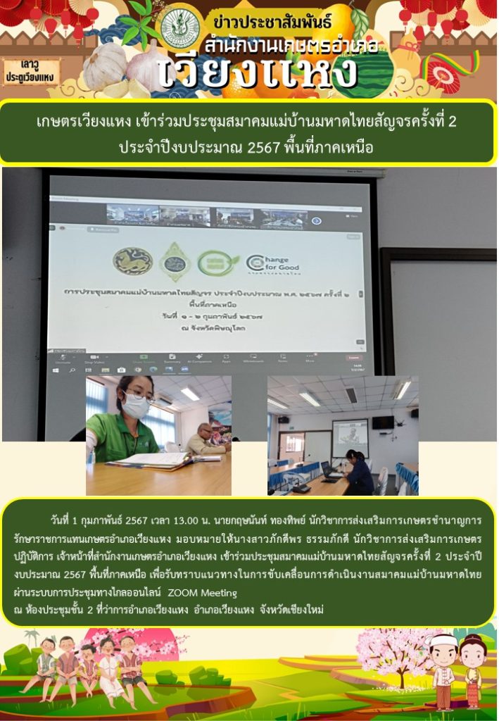 26ก.พ./24 เกษตรเวียงแหง เข้าร่วมประชุมสมาคมแม่บ้านมหาดไทยสัญจรครั้งที่ 2ประจำปีงบประมาณ 2567 พื้นที่ภาคเหนือ 26 กุมภาพันธ์ 2024ไม่มีหมวดหมู่admin