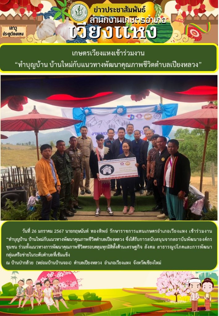 26ก.พ./24 เกษตรเวียงแหงเข้าร่วมงาน “ทำบุญบ้าน บ้านใหม่กับแนวทางพัฒนาคุณภาพชีวิตตำบลเปียงหลวง” 26 กุมภาพันธ์ 2024ไม่มีหมวดหมู่admin